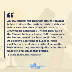 “An ‘educational’ program that aims to convince judges to side with climate activists in state and federal cases has already reached more than 2,000 judges nationwide,” the magazine reported. “The program, called the Climate Judiciary Project (CJP), began under the Environmental Law Institute (ELI) in 2018. Its objective, according to ELI, is to ‘make available to federal, state, and local judges the basic science they need to adjudicate the climate litigation over which they preside.’”